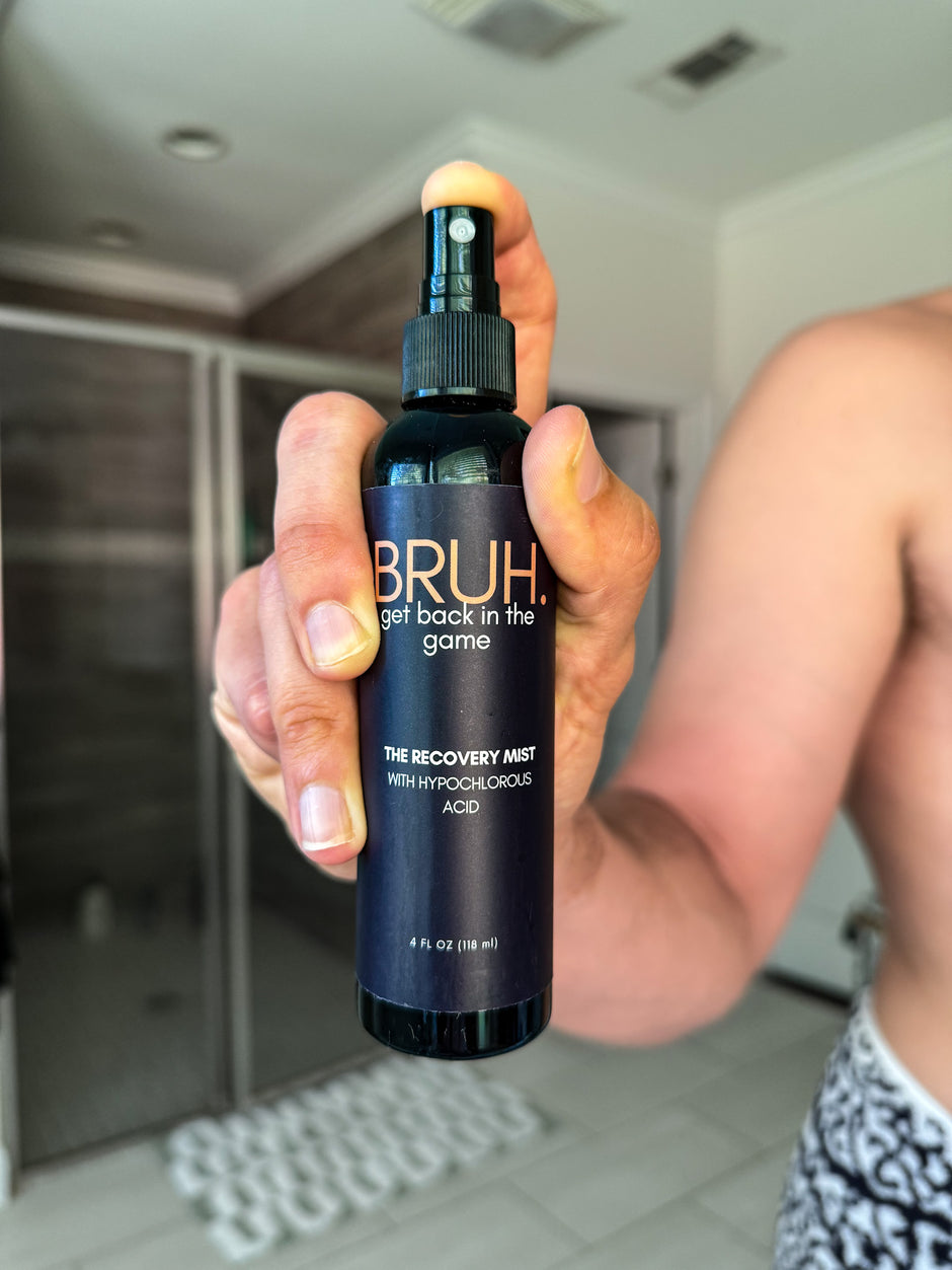 Experience the insane healing power of Hypochlorous Acid with BRUH's "get back in the game" Recovery Mist.